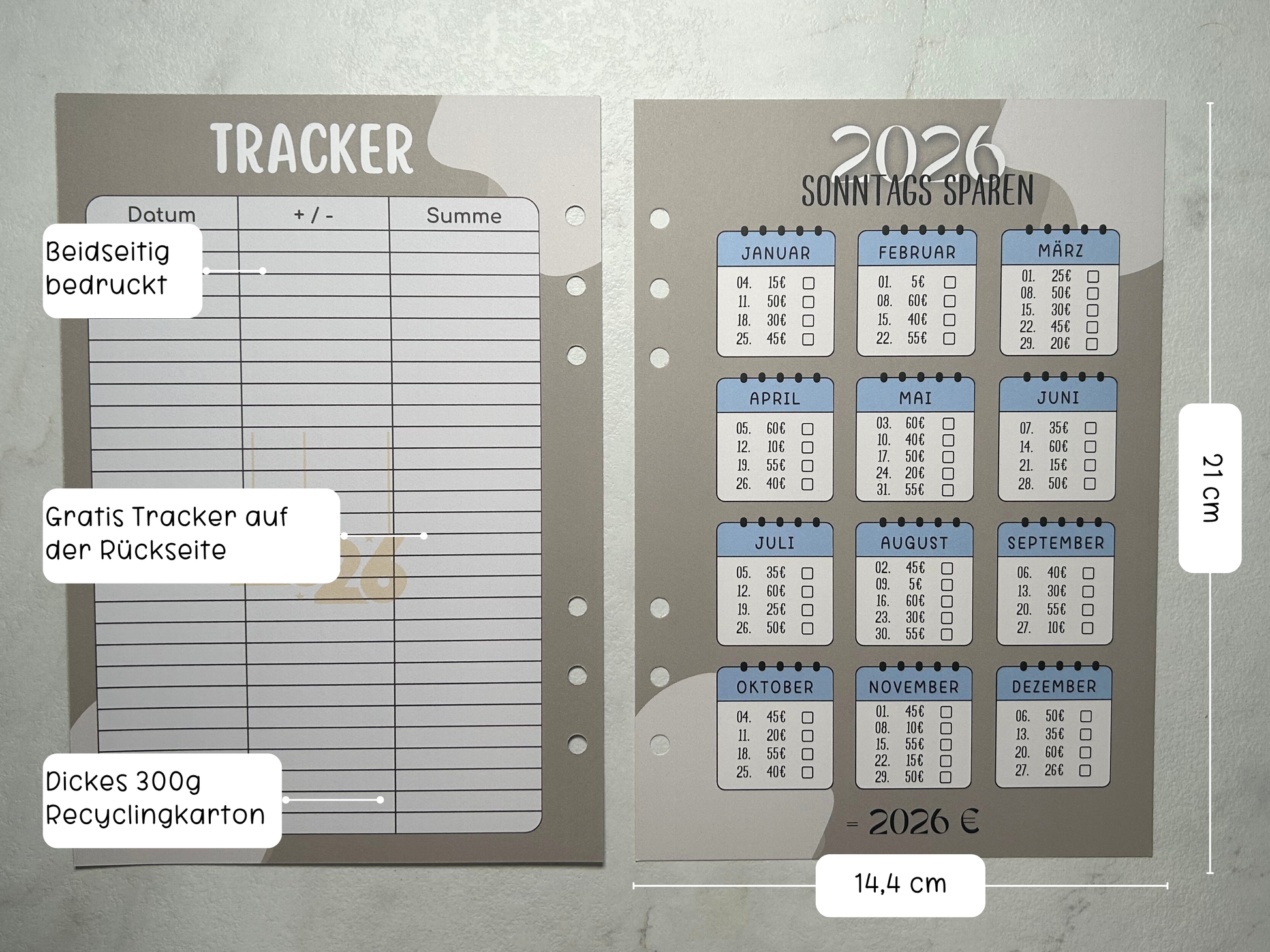 Die Einlagen passen perfekt in einen A5 Binder und haben einen gratis Tracker auf der Rückseite :)