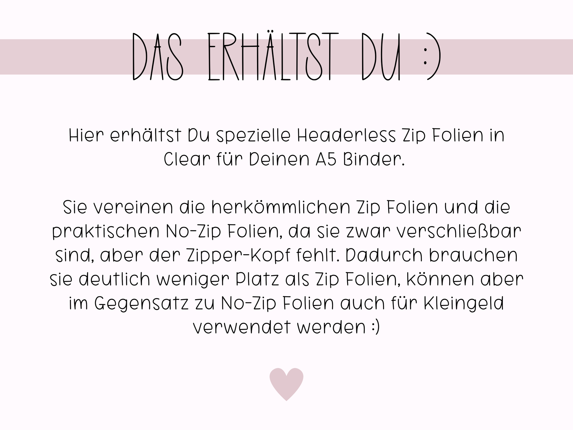 Hier erhältst Du spezielle Headerless Zip Folien für Deinen vorhandenen A5 Binder.