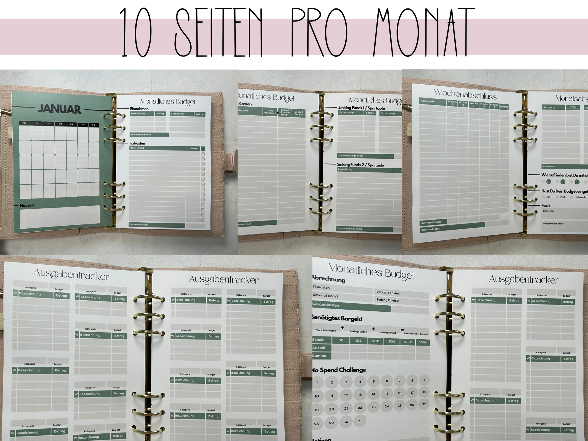 Jahresbudget Planer inkl Anleitung für 12 Monate, beidseitig und klimaneutral gedruckt auf 120g Naturpapier