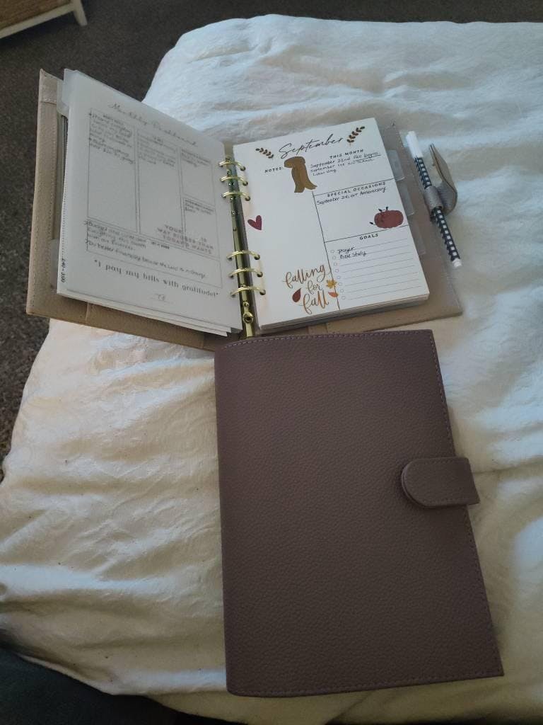 Wunderschöner texturierter Binder mit vielen Fächern, Platz für Geldscheine und auch mit extra großen Ringen, damit noch mehr Folien Platz finden.