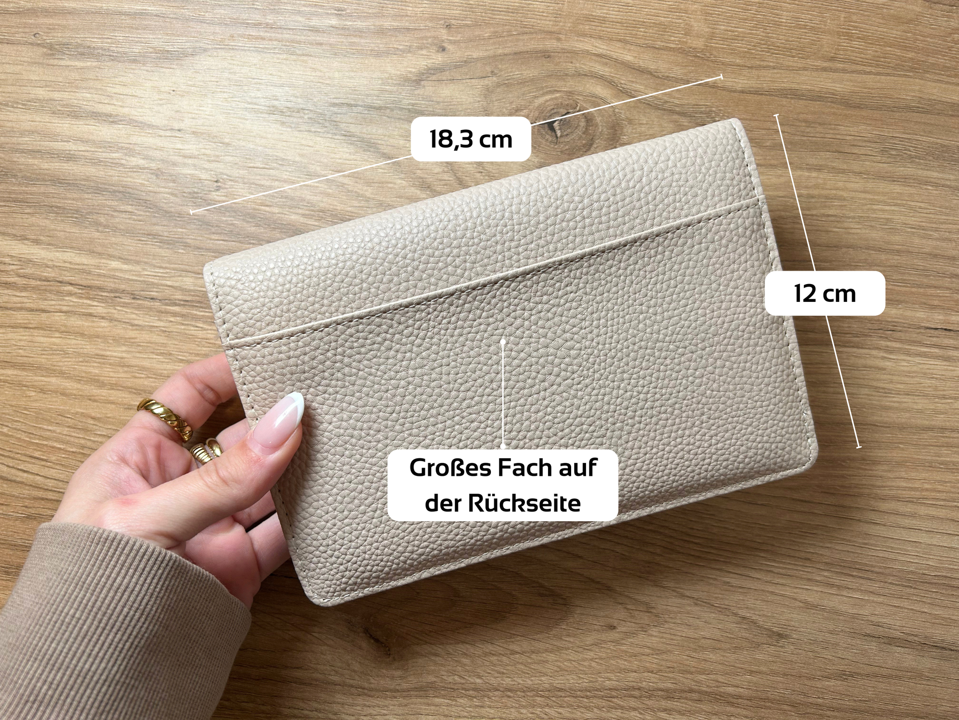 - Großes Münzgeldfach mit Reißvereschluss
